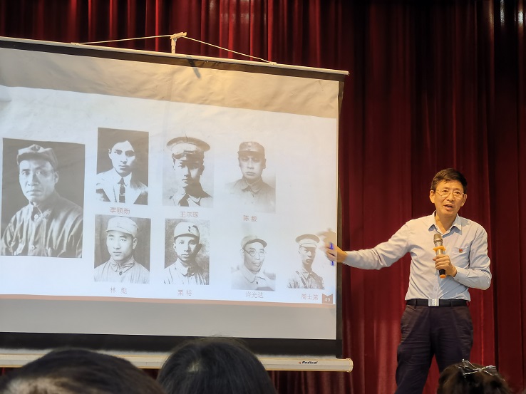 武侯区委党校一级调研员讲师寇智强为大家讲述了党史故事。他重点讲述了中国共产党建党初期的故事和四川省籍老革命朱德元帅的故事。寇老师生动精彩的故事,赢得了大家热烈的掌声。