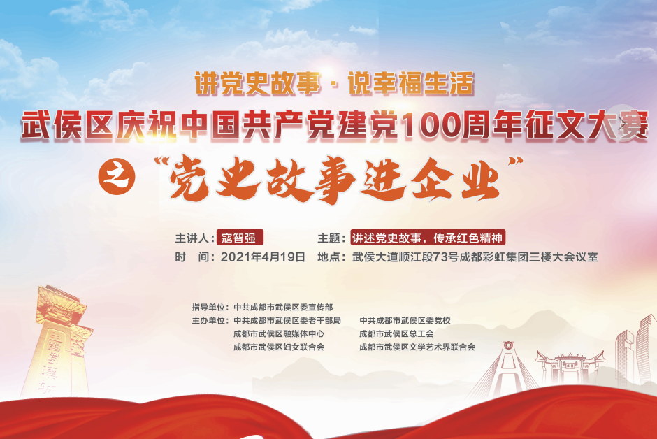 4月19日,武侯区委宣传部指导的“讲党史故事,说幸福生活”征文大赛线下活动之一,党史学习进企业,在公司举行。武侯区委老干局、区委党校、区融媒体中心、区总工会、区妇联、区文联党员干部和公司全体党员,入党积极分子一道聆听党史故事。