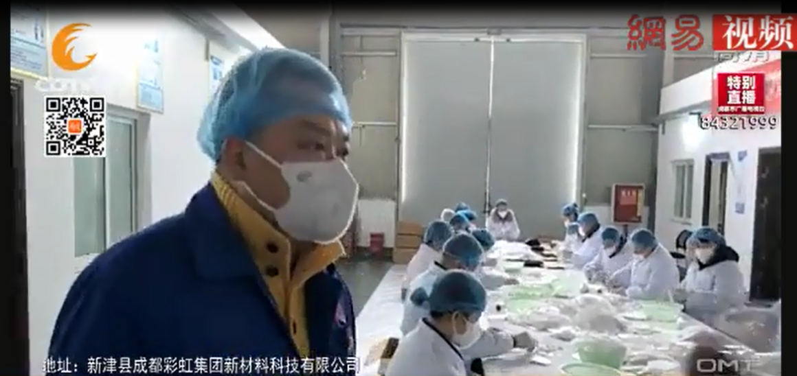 日前,成都台记者到米兰MILAN(中国)集团环保科技分公司进行采访,现场播报口罩生产情况。集团公司常务副总经理刘斌接受现场采访,并就记者关心的口罩产能、人员安排、生产进度、生产环节和工艺等问题进行了详细解答。