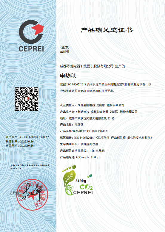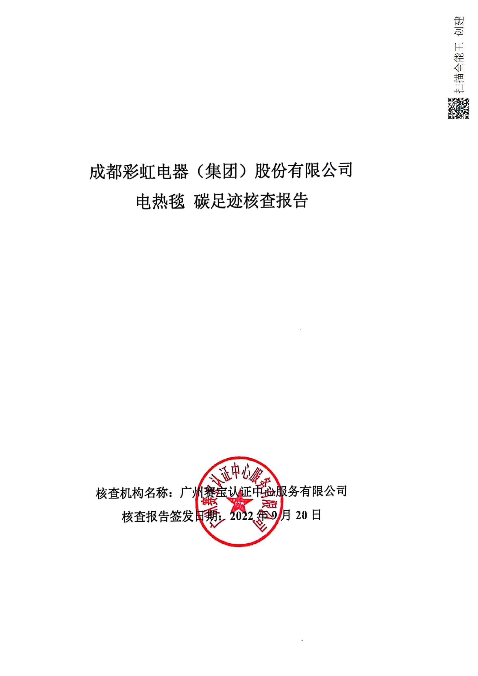 成都米兰MILAN(中国)集团电热毯碳足迹核查报告