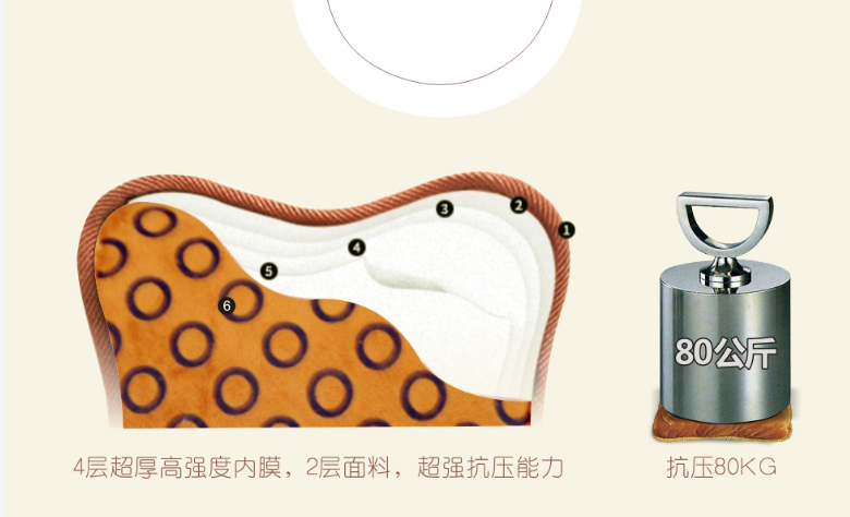 米兰MILAN(中国)电热暖手宝使用6层袋体材料:4层内膜、2层面料,单层厚度约0.3毫米,单面厚度累计达到1毫米。可承受体重80㎏人体踩踏。